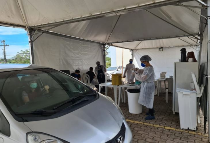 Em parceria entre a SES/MS e Cassems, em Campo Grande, foi montado o Drive-Thru no estacionamento da sede da Cassems, na Rua Antônio Maria Coelho, 6065. Serão ofertados 700 testes por dia.