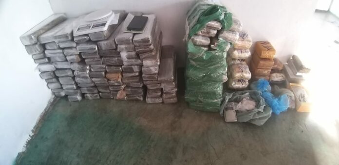 A Polícia Militar apreendeu cerca de 90 quilos de maconha dentro de uma residência em Campo Grande na tarde desta quarta-feira (22). De acordo com as informações do capitão Carlos Arashiro, uma mulher já foi identificada e está sendo procurada como sendo a responsável pelos entorpecentes.