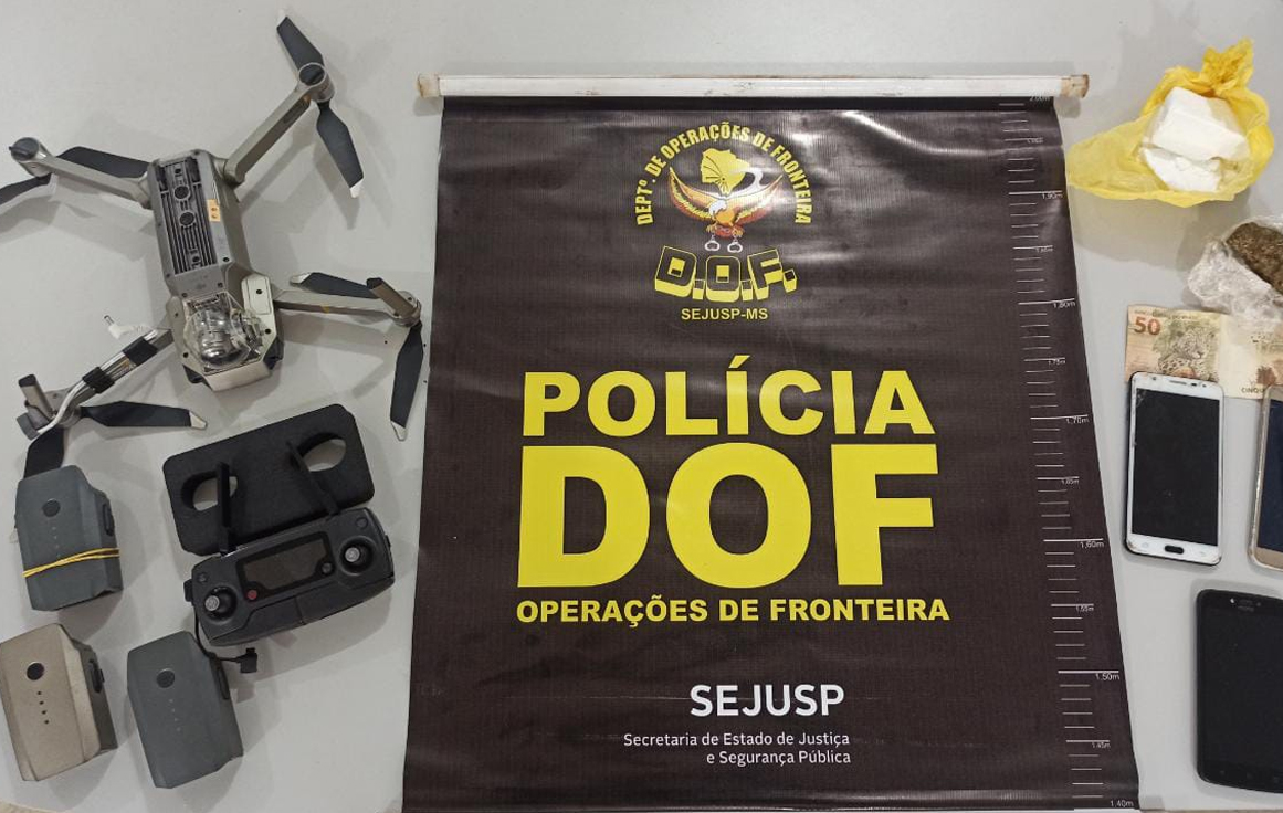 Policiais do Departamento de Operações de Fronteira (DOF) apreenderam na tarde de ontem (30), um drone com três baterias, três celulares e drogas que seriam entregues aos internos da Penitenciária Estadual de Dourados (PED).