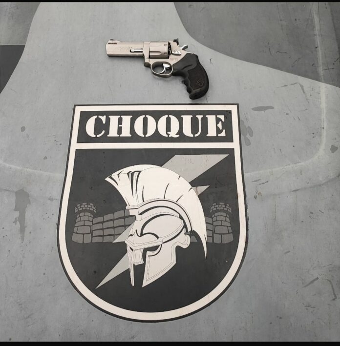 Durante o ato, os seguranças conseguiram tomar a arma das mãos dela e a algemaram, no entanto, a mulher conseguiu se soltar e entrou em luta corporal com a equipe. Nesse momento, a equipe do Choque passava pelo local e foi acionada por um dos seguranças.