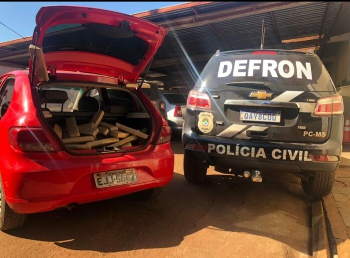 Ao realizar diligências em Ponta Porã, equipe da Dferon visualizou dois  indivíduos que estavam em um VW Gol, com placas de Aral Moreira, os quais, ao visualizarem a viatura, desceram do automóvel e saíram caminhando pela via pública, rumo à fronteira com o Paraguai. Em razão da atitude, suspeita os dois indivíduos foram abordados antes de entraram no Paraguai e, ao ser vistoriado o automóvel, os policiais identificaram que no seu interior havia centenas de tabletes de maconha.