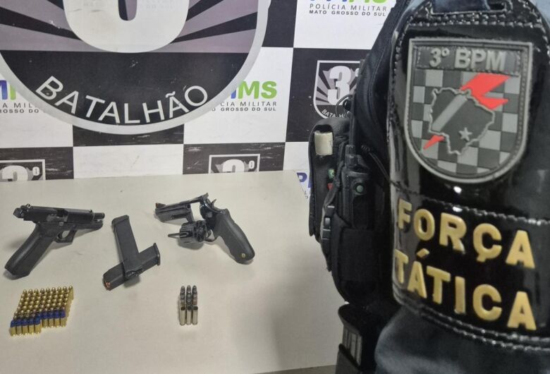 Armas e munições foram apreendidas com uma dupla, de 23 e 27 anos, na madrugada desse sábado (24), em Dourados. Segundo a ocorrência, denúncias indicaram para uma casa na Rua Cabral, no bairro Jardim Monte Líbano, onde teriam pessoas armadas.