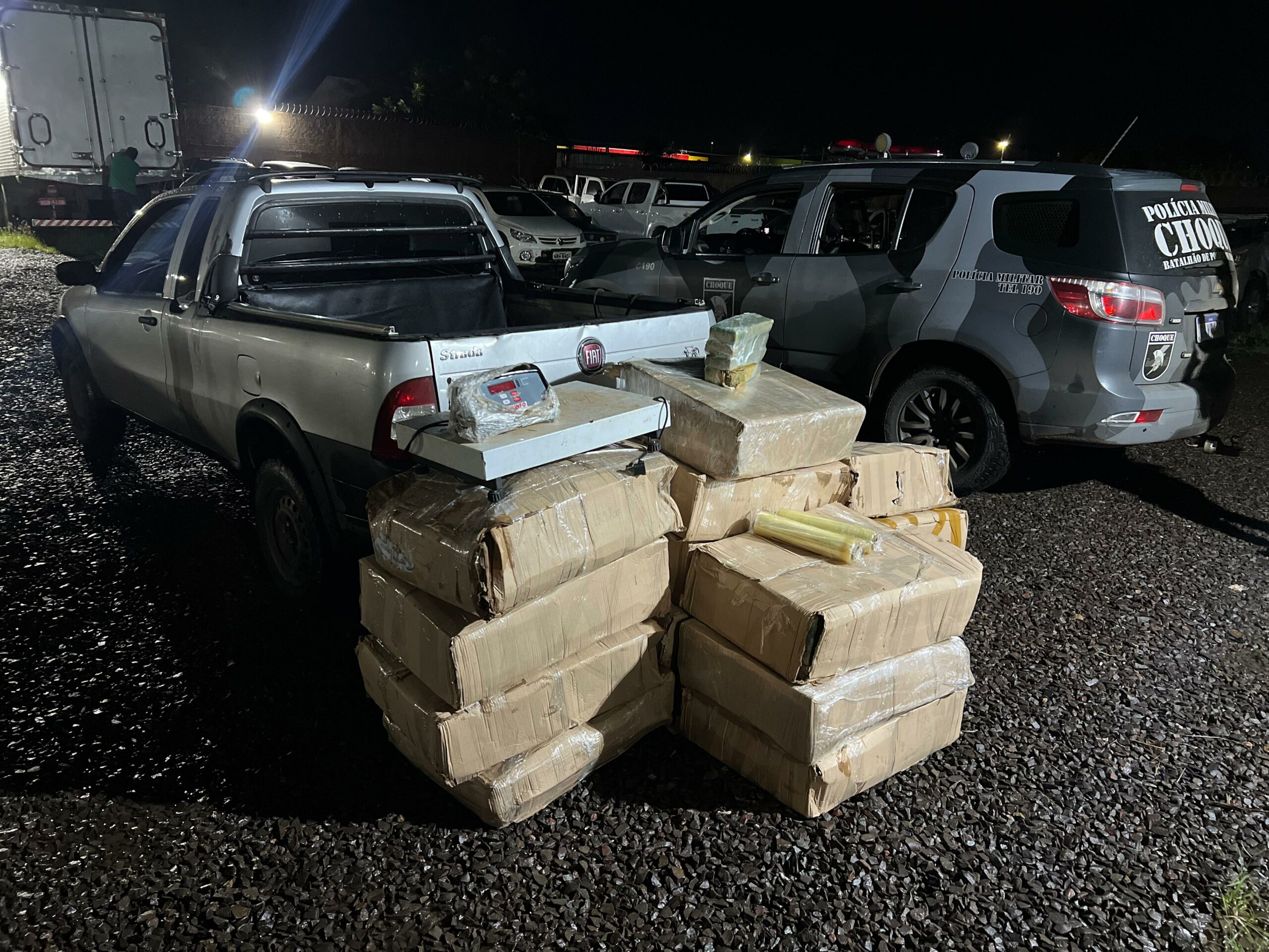 Dois homens, de 25 e 29 anos, foram presos na noite de ontem (16), com um veículo Fiat Strada com sinais de adulteração e queixa de furto, além de drogas no interior de uma casa na Rua Y-juca Pirama, no Jardim Los Angeles, em Campo Grande.