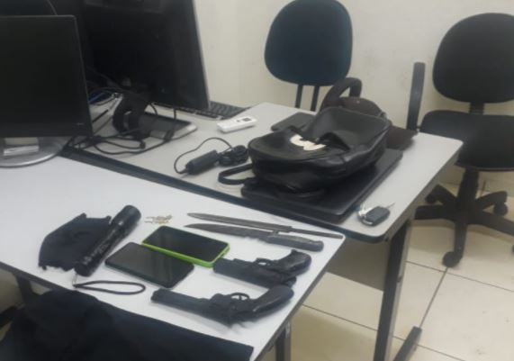 De imediato um dos autores já confessou o assalto e disse que os objetos estavam no veículo. Além dos materiais roubados, foram apreendidos duas facas, um simulacro de pistola e outro simulacro de revólver, além de uma touca balaclava.