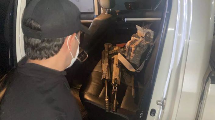 No local, foram encontrados seis fuzis, carregadores e dezenas de munições, colete à prova de balas, dinheiro, documentos e celulares usados pelo grupo.