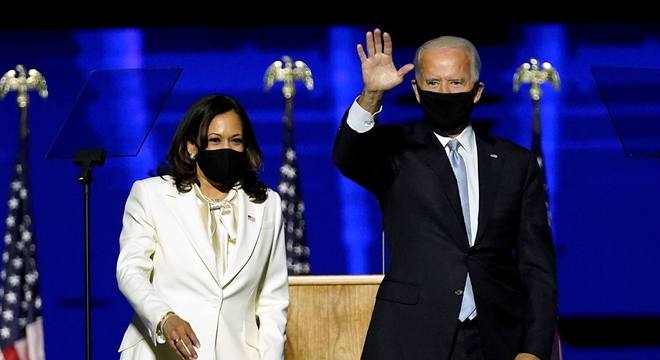 O presidente eleito, durante o discurso — que durou pouco mais de 15 minutos —, também cumprimentou a vice-presidente da chapa, Kamala Harris, com quem ele chegou a disputar as prévias. O democrata ressaltou a importância dela, primeira mulher negra a ser eleita para ocupar o carga na Casa Branca.