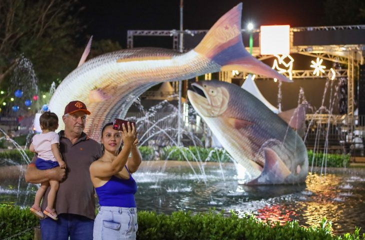 “Ah, é tudo muito lindo! Eu acho que superou todas as expectativas, esse ano. Está muito lindo mesmo! Esse trabalho, nossa, eu achei muito bonito o trabalho artístico, a decoração”, contou a bonitense. Ela admirou com os filhos as esculturas sustentáveis com formas de animais do Pantanal: tuiuiú, onça e um peixe.