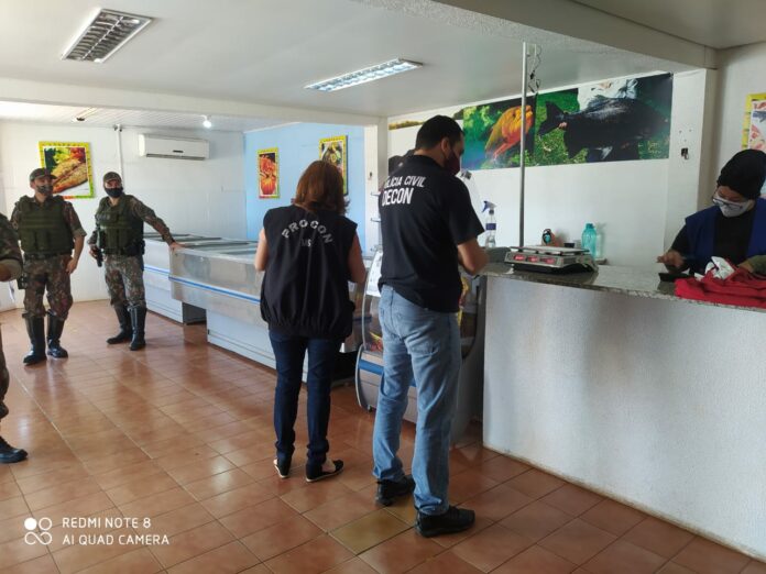 Em ação conjunta entre equipe de fiscalização do Procon Estadual e integrantes da Policia Militar Ambiental (PMA), da Vigilância Municipal em Saúde e Delegacia do Consumidor (Decon) autuaram peixarias em Campo Grande, após verificar denúncias de consumidores.