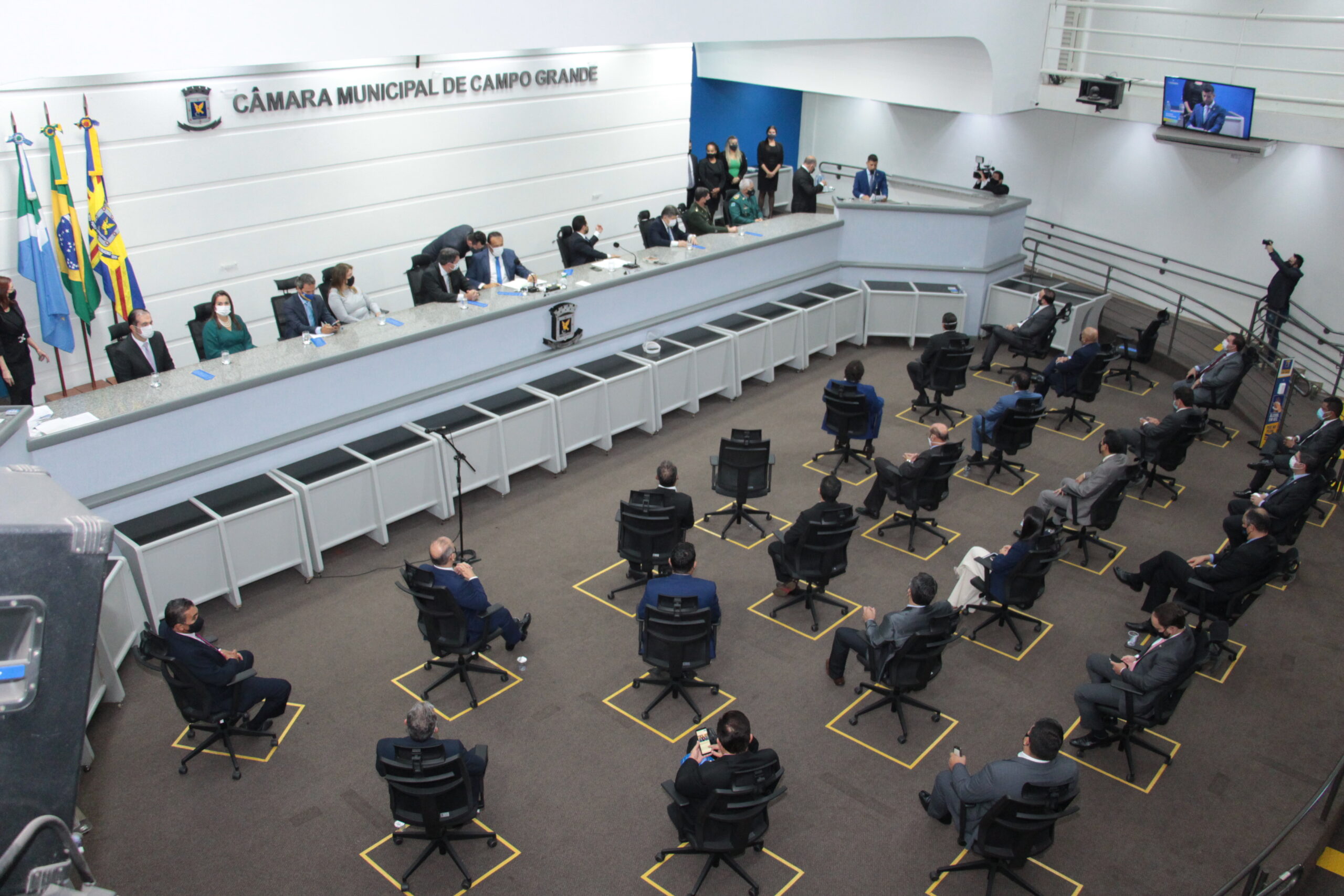 Nesta quinta-feira (18), a sessão solene inaugural marcou a retomada dos trabalhos na Câmara municipal de Campo Grande. Foram definidas as 15 lideranças políticas de cada partido e o presidente da casa de leis, vereador Carlão, falou sobre os desafios para o ano de 2021.