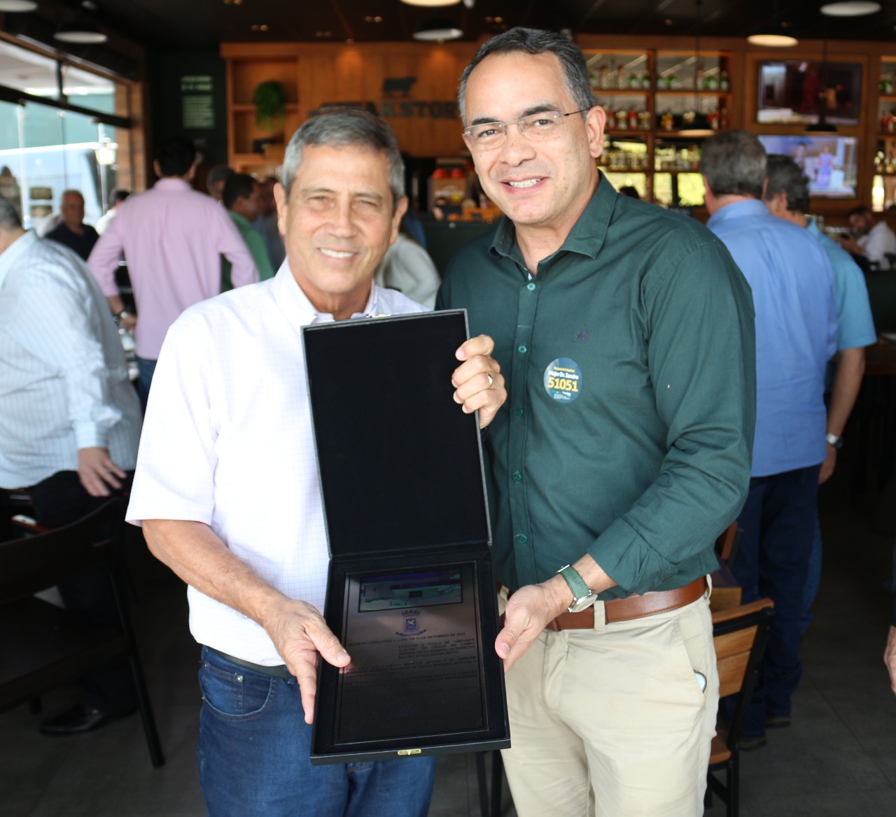 Após a caminhada, já durante o almoço, Braga Netto recebeu o diploma do Título de Cidadão Ilustre da Cidade de Campo Grande’, aprovado pela Câmara Municipal e entregue pelo vereador Dr. Sandro. Durante a tarde, ele visitou quartéis do Exército e participa de reunião com apoiadores, onde deve detalhar o plano de governo. Ele também vai participar de um ato politico promovido pelo candidato Eduardo Riedel no final da tarde.