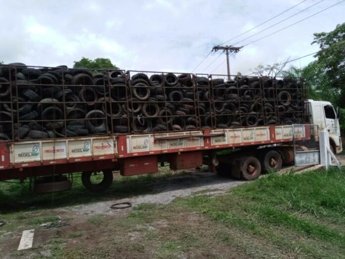 Após a coleta, os pneus são levados para a cidade de São Paulo, onde a empresa mantém a sede e executa o trabalho de destinação. Foi o primeiro envio do ano.