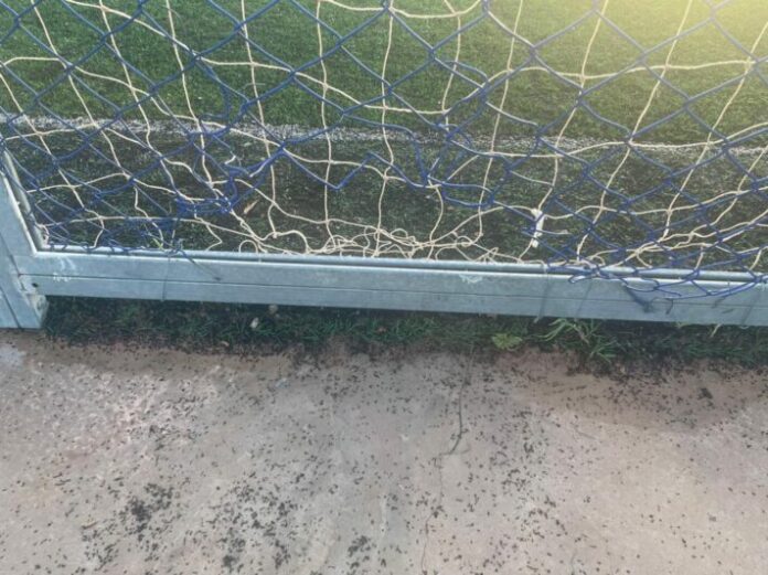 Alambrado danificado pelas crianças (Foto: Prefeitura de Coxim)
