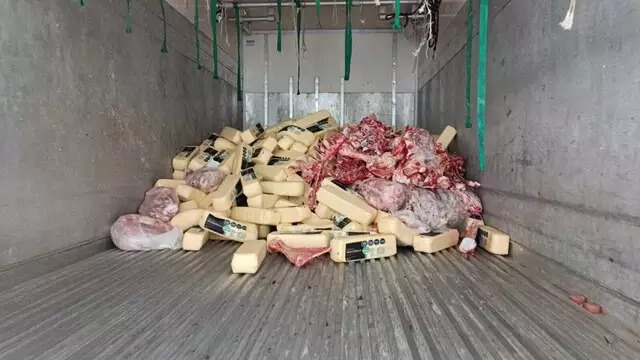 Ao todo, foram apreendidos 707 kg de carne, 769 kg de frios fatiados, 34 kg de linguiça de fabricação própria, 47 kg de queijo caipira, 8,75 kg de charque de fabricação própria, e 2,1 toneladas de mussarela argentina.