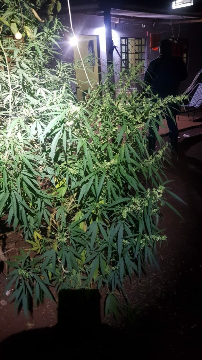Foi constatado em uma quitinete dois pés de maconha de aproximadamente um metro que foi plantado por pessoas que convive nesta quitinete.