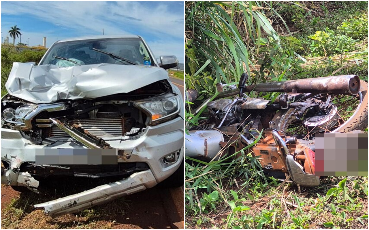 Caminhonete e moto do acidente em Dourados (Fotos: Redes Sociais)