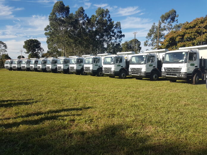 Com esse total, foi possível ao governo do Estado adquirir 32 caminhões basculantes, cuja distribuição foi definida por Geraldo Resende e pelo governador Reinaldo Azambuja a partir das demandas apresentadas por prefeitos, comunidades e associações ligadas à Agraer.