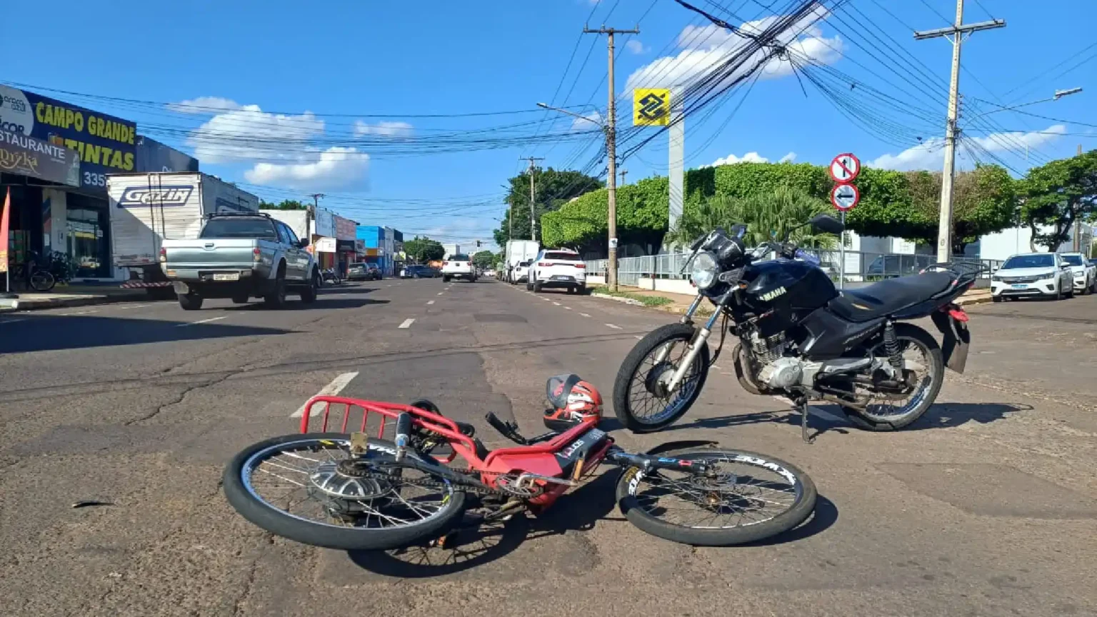 Segundo o Batalhão de Trânsito (BPMTran), a vítima seguia numa bicicleta elétrica sentido centro-bairro quando foi atingido pela moto no momento em que passava o cruzamento.