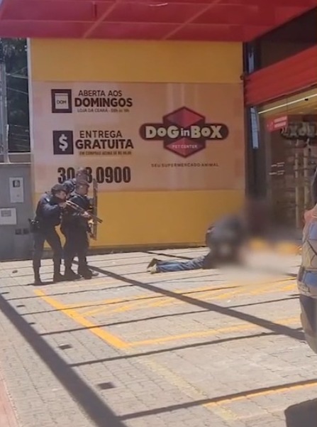 Na calçada, os policiais mandaram ela se deitar com a mão atrás da cabeça. Um grupo de PMs se aproximou usando um escudo e armas, enquanto outro militar efetuou a detenção com algemas. Ela foi levada para a delegacia de polícia.