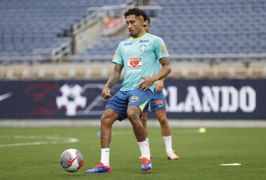 Raphinha treina em Orlando (Foto: Rafael Ribeiro/CBF)