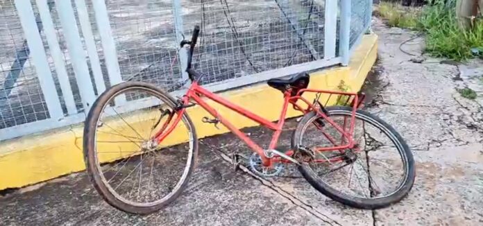 Ao passar pelo ônibus, a bicicleta acabou batendo na lateral e foi parar debaixo das rodas do coletivo. Os dois ocupantes, porém, caíram na calçada e sofreram ferimentos leves.