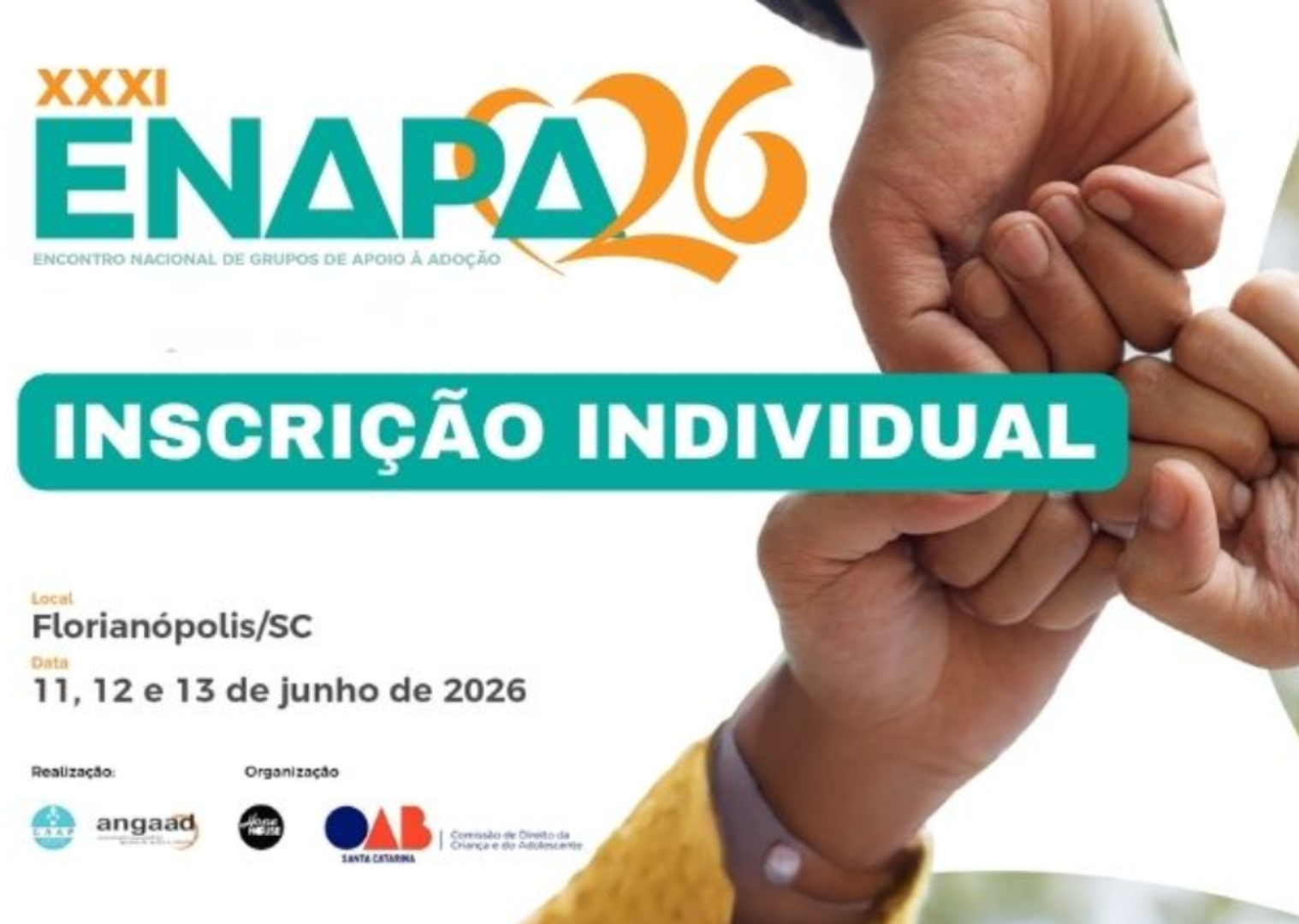 A mobilização em torno da adoção no Brasil ganha um importante espaço de diálogo e troca de experiências com a realização do XXXI Encontro Nacional de Grupos de Apoio à Adoção (Enapa 2026). Promovido pela Associação Nacional de Grupos de Apoio à Adoção (Angaad), em parceria com o Instituto Hope House, o evento acontecerá entre os dias 11 e 13 de junho, em Florianópolis (SC), reunindo profissionais, famílias e voluntários envolvidos com a causa.