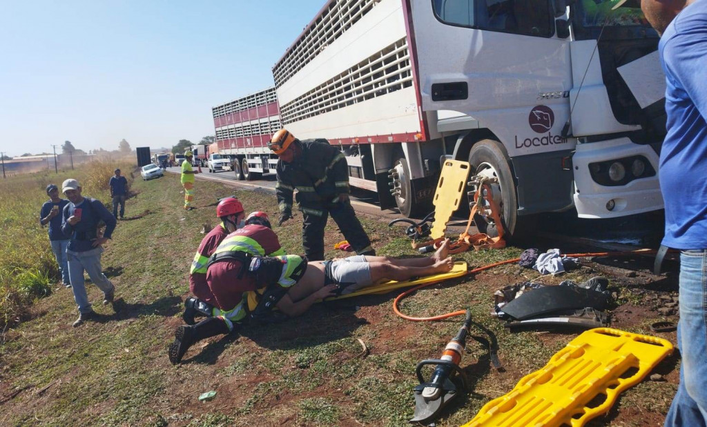 O mesmo aconteceu com a terceira carreta envolvida no sinistro, que também estava carregada de porcos, e bateu na traseira do segundo veículo. Devido aos impactos, os motoristas que estavam com os animais ficaram presos às ferragens.
