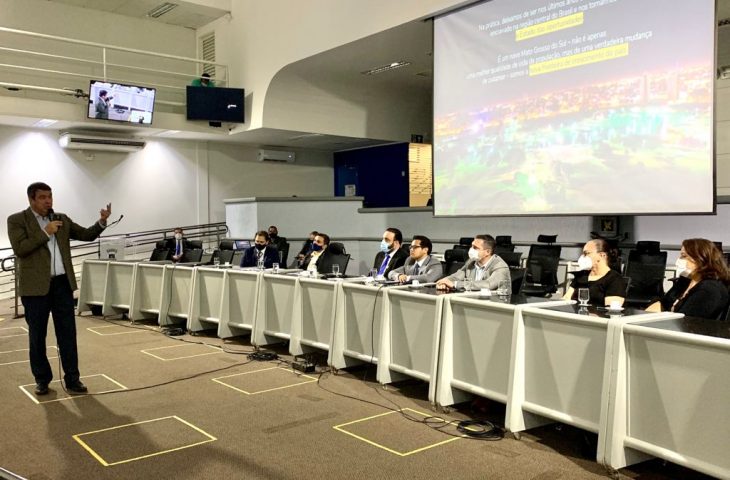 O presidente do Comitê Gestor do Prosseguir (Programa de Saúde e Segurança na Economia), secretário de Infraestrutura, Eduardo Riedel, ministrou uma palestra com o tema ‘O desafio do emprego, no cenário pós-pandemia’, nesta quinta-feira (19), na Câmara dos Vereadores de Campo Grande.