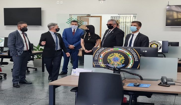 O secretário de Estado de Justiça e Segurança Pública, Antonio Carlos Videira, e o superintendente de Inteligência da Sejusp, Antônio Carlos Costa Mayer, receberam nesta sexta-feira (23), em Campo Grande, a Diretora de Inteligência da Secretaria de Operações Integradas do Ministério da Justiça, Marília Ferreira de Alencar, e o Coordenador-Geral de Inteligência, Tomas de Almeida Viana, para uma visita técnica ao novo Centro de Inteligência de Segurança Pública Regional Centro-Oeste (CIISPR-CO), que será inaugurado no mês que vem em Mato Grosso do Sul.