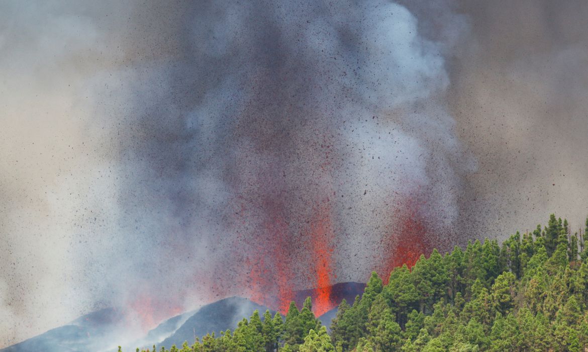 O vulcão entrou em erupção nesse domingo (19), lançando lava a centenas de metros de altura, atingindo casas e florestas e enviando rocha derretida rumo ao Oceano Atlântico, ao longo de uma área escassamente povoada de La Palma, ilha do extremo noroeste do arquipélago das Canárias.