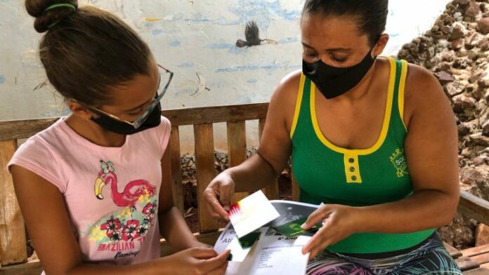 O cartão está ligado a um mapa com etapas a serem realizadas pelos alunos, as quais englobam o recebimento do caderno, realização das atividades e devolução do material. No final do percurso proposto e com todas as atividades entregues, o estudante recebe um prêmio – lápis de cor, estojo ou canetinha. “Os pais gostaram muito, pois, desta forma, os filhos ficaram mais interessados a finalizarem para receberem o prêmio. Gostaram também porque, desta forma, fica mais fácil ter o controle dos cadernos de atividades que já foram entregues e dos que ainda faltam. É uma forma de incentivar, valorizar e controlar as apostilas que foram executadas”, explica o diretor da escola, Francisley Galdino.