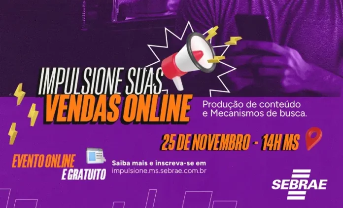 Em um mundo cada vez mais digital, a capacidade de buscar estratégias e aproveitá-las em benefício do negócio é um diferencial para os empreendedores que desejam atrair mais clientes. Para ajudar os empresários nesse processo, o Sebrae/MS realiza, no dia 25 de novembro, mais uma edição do evento “Impulsione suas vendas online”, desta vez, com a participação de especialistas do Google Search e Canva Brasil. As inscrições já estão abertas e podem ser feitas pelo site impulsione.ms.sebrae.com.br.