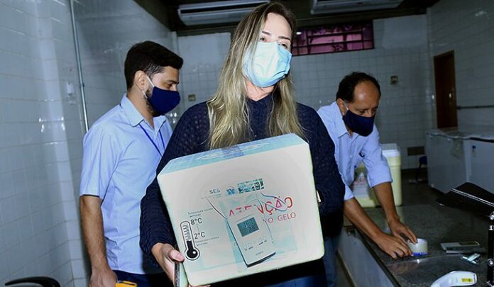 O primeiro lote com a vacina chegou, nesta segunda-feira (18), com 158 mil doses enviadas pelo Ministério da Saúde. A distribuição para os 79 municípios segue o Plano Estadual de Distribuição da Vacina contra a Covid-19, por intermédio de força-tarefa da Secretaria de Estado de Saúde (SES) e da Secretaria de Estado de Justiça e Segurança Pública (Sejusp).