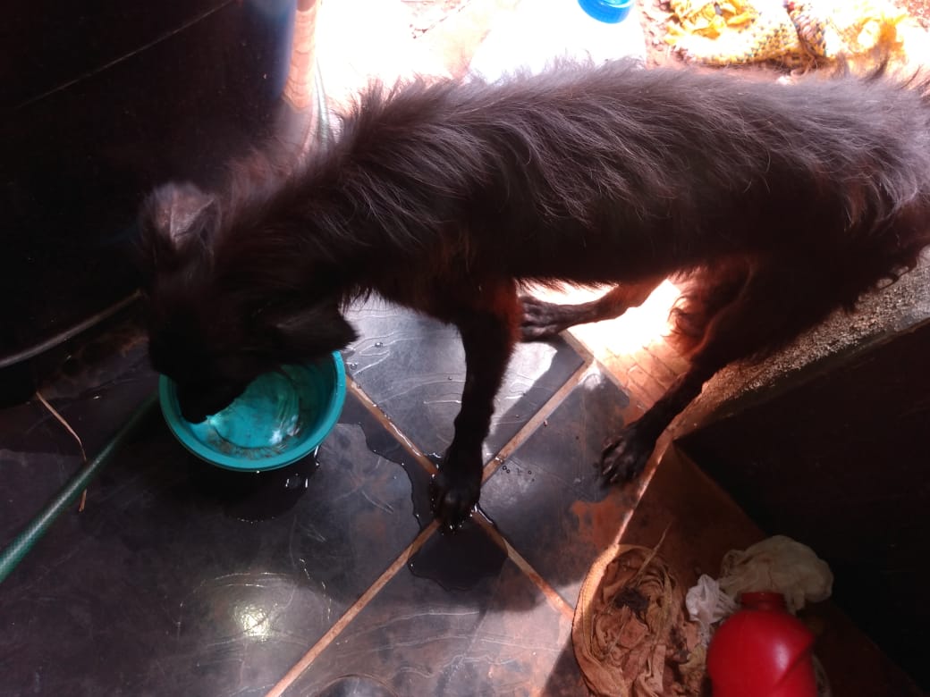Após denúncia, os policiais militares chegaram até uma quitinete, nos fundos de uma casa, onde encontraram o animal sem alimentação e água, apresentando visíveis sinais de desnutrição, sarna e doente, inclusive, com paralisação parcial das patas traseiras e sinais que indicavam leishmaniose.
