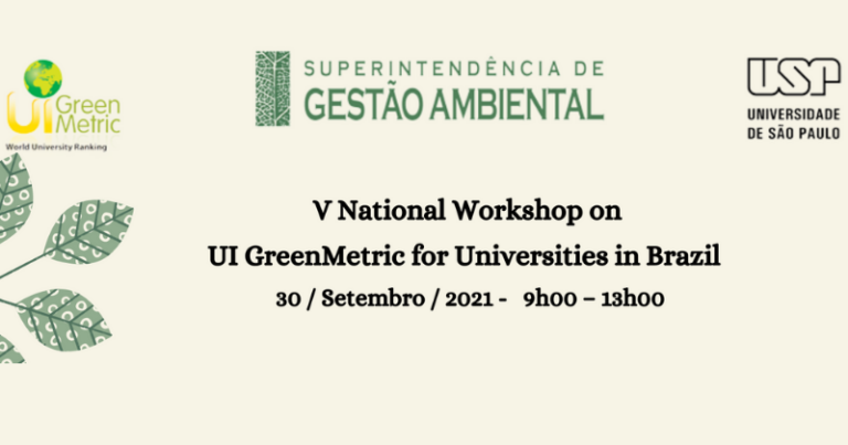 Na manhã desta quinta-feira (30), foi realizado o 5º National Workshop on UI GreenMetric for Universities in Brazil – 2021. O evento virtual, gratuito e em português foi transmitido no canal da Superintendência de Gestão Ambiental da Universidade de São Paulo (USP), responsável pela organização. E experiências da UFMS (Universidade Federal de Mato Grosso do Sul) foram apresentadas no workshop nacional.