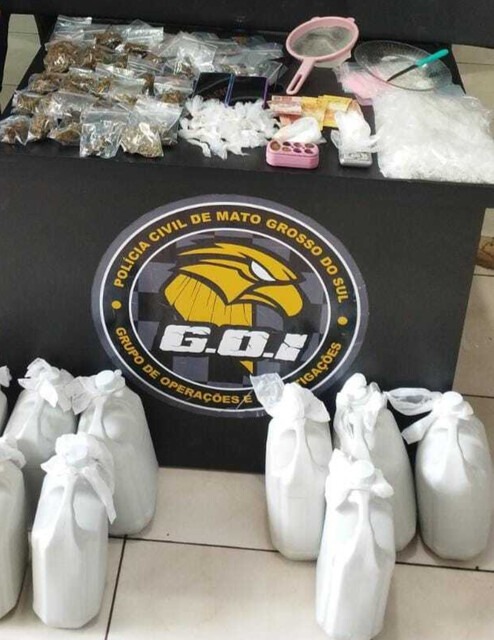 Drogas e produtos apreendidos na casa (Foto: PCMS)