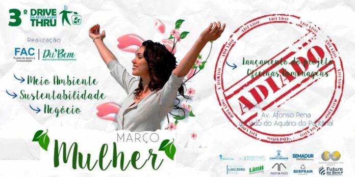 Devido ao rápido avanço de novos casos registrados da Covid-19, a ação “Março Mulher”, prevista para os dia 19, 20 e 21 deste mês, nos altos da Avenida Afonso Pena, foi adiada. Ainda sem uma nova data para acontecer, o evento segue os protocolos de segurança da Prefeitura Municipal de Campo Grande.