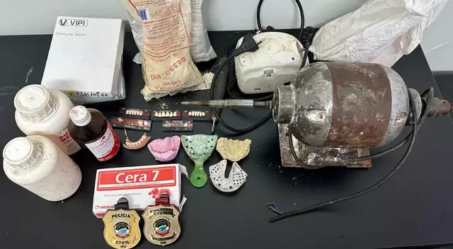 Dentro do veículo, a polícia encontrou equipamentos e materiais destinados à confecção das próteses dentárias. Os objetos foram apreendidos.