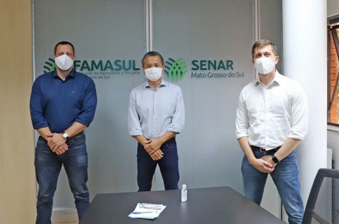 Ambiente virtual de negócios para a agropecuária em Mato Grosso do Sul. Esta é a proposta do Circuito Virtual Agro 2021, que foi apresentado pelo superintendente regional do Banco do Brasil, Marcel Figueiredo, e o gerente de Mercado Agronegócios, Eduardo Campos, em visita ao presidente do Sistema Famasul, Mauricio Saito, nesta quarta-feira (12). A instituição  é parceira da etapa da iniciativa a ser realizada no Centro Oeste, entre maio e junho, que pretende movimentar a economia seguindo os moldes das tradicionais feiras agropecuárias do estado.