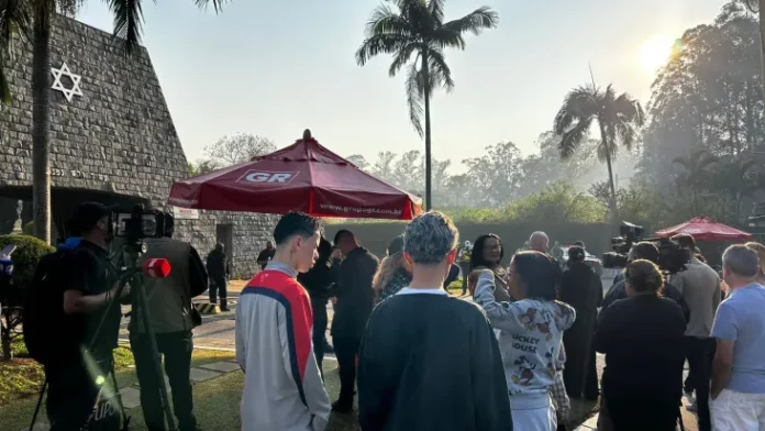 Fãs em frente ao cemitério Israelita do Butantã, em São Paulo, onde acontece a cerimônia de enterro de Silvio Santos (Foto: Bruno Teixeira / CNN)