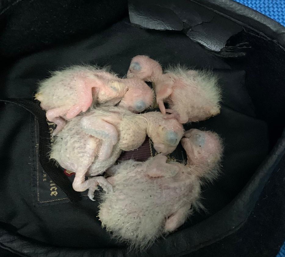 A equipe da Polícia Militar que resgatou as aves pediu urgência, em razão de que os filhotes não possuíam penas ainda e o frio estava muito intenso.