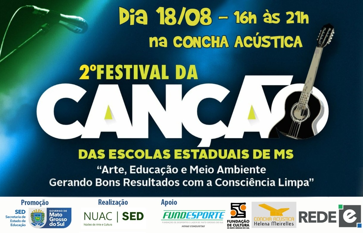 Realizado pela SED (Secretaria de Estado de Educação) em parceria com a FCMS (Fundação de Cultura de Mato Grosso do Sul), o final de tarde será todo especial pois além da premiação ao melhor intérprete e das três melhores canções, pela primeira vez as dez canções finalistas serão apresentadas ao público.