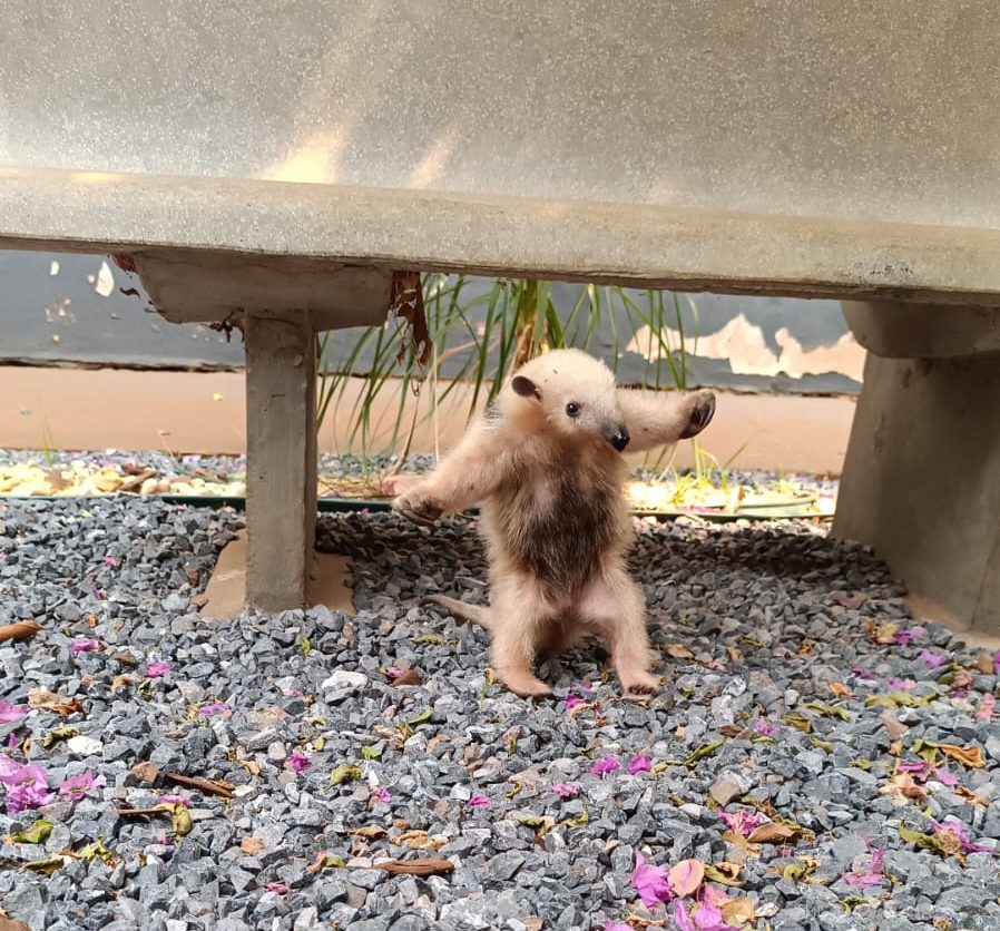 O filhote de um tamanduá foi resgatado por um policial civil lotado na Delegacia de Polícia de Jardim. A ocorrência foi no domingo (1º).