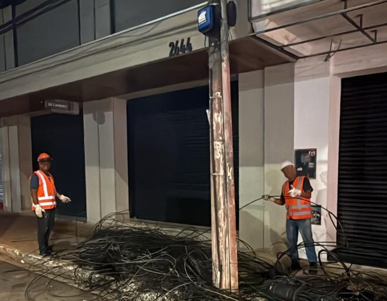 Segundo Adriana, o trabalho se concentra em três frentes: retirada de fios clandestinos sem identificação, fios soltos e fios obsoletos. Ela destacou também o reforço da segurança. “Esta região é sensível, e houve empresas tentando acessar os postes durante os trabalhos. Por isso, contamos com apoio ostensivo das forças de segurança.”