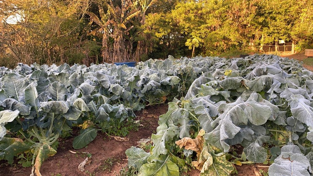 Na horta em Itatinga, agricultores perderam 80% da produção por causa da geada — Foto: Gabriela Prado/ TV TEM