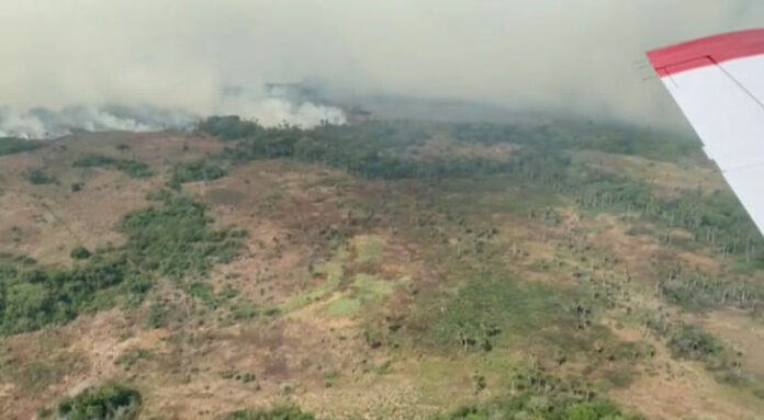 Durante a manhã desta segunda-feira, o Corpo de Bombeiros Militar fez um sobrevoo de monitoramento na região e detectou focos de incêndios esparsos ao longo da estrada que liga a pousada Xaraés até a fazenda Santa Otília.