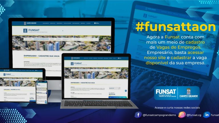 A Funsat está possibilitando o preenchimento do cadastro de vagas de emprego diretamente no site oficial. A plataforma, totalmente on-line, tem o objetivo de facilitar a captação (com empresários) e divulgação de oportunidades no mercado de trabalho.