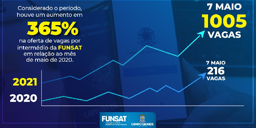 No entanto em 2021, mesmo com o pico da pandemia, já que abril foi o mês mais letal desde o início das infecções pelo novo coronavírus, Campo Grande conseguiu números expressivos de vagas de emprego já no início de maio, com a marca histórica de 1005 vagas.