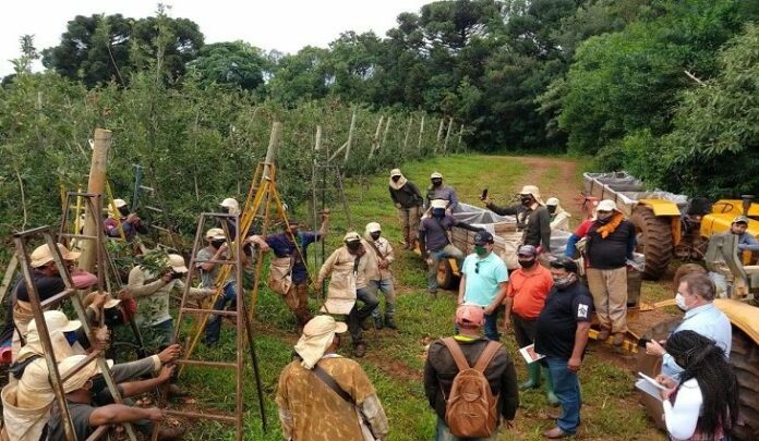 Em janeiro de 2021 a Funtrab acompanhou o embarque dos primeiros trabalhadores indígenas para colheita de maçãs, das etnias guarani-kaiowá e terena, das aldeias Amambai e Limão Verde, do município de Amambai, e das aldeias de Aquidauana e Miranda.