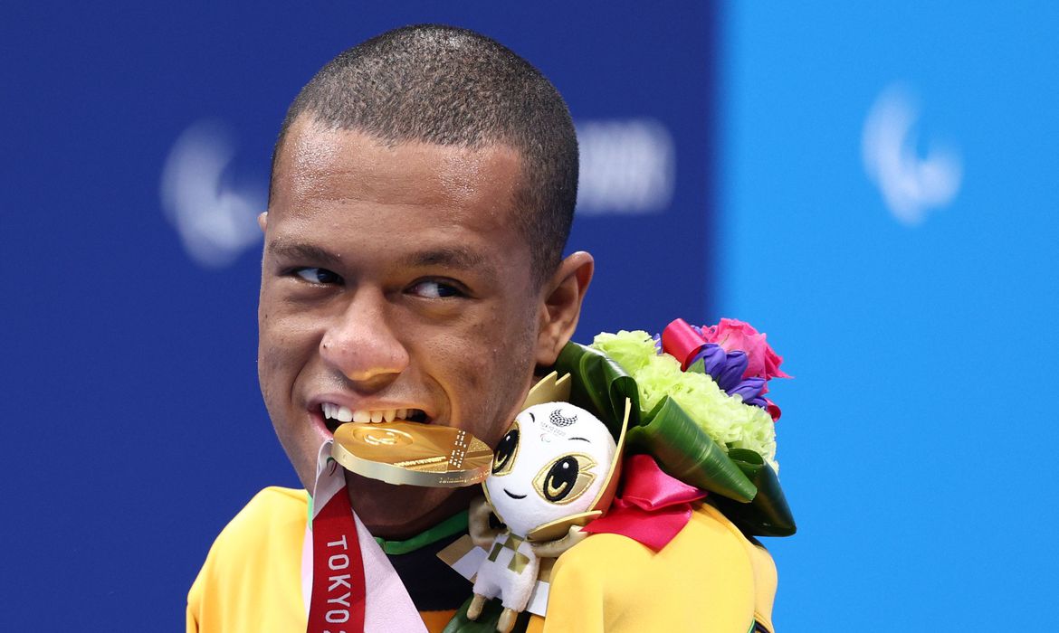 O mineiro Gabriel Geraldo Araújo, o Gabrielzinho, conquistou na manhã de hoje (2) o ouro na prova dos 50 metros costas da classe S2 (deficiência físico-motora), com o tempo de 53s96. Esta é a terceira medalha de nadador, de 19 anos, na Paralimpíada de Tóquio (Japão). Ele já havia garantido o ouro nos 200 m livre da classe S2 e prata nos 100 metros costas (S2).
