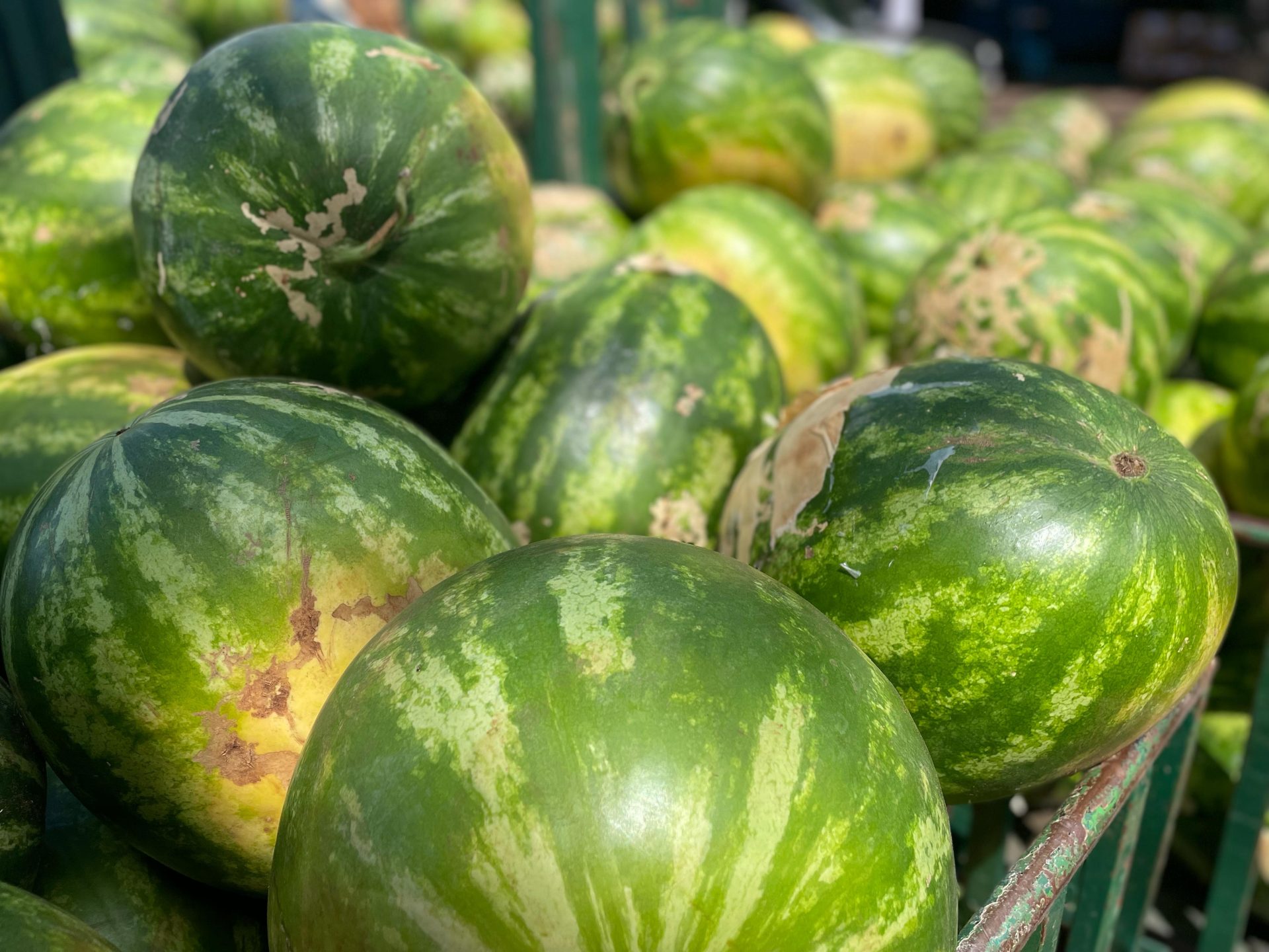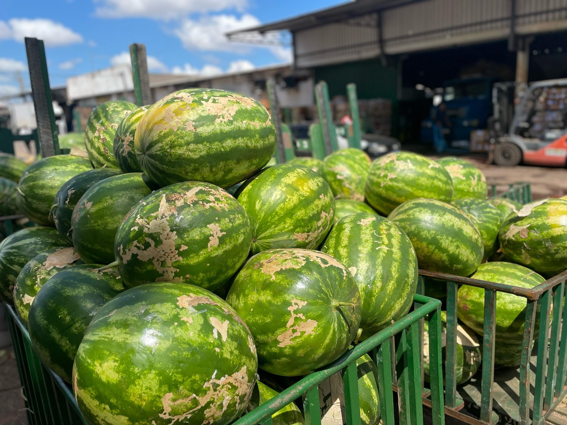 Sensível, a melancia exige cuidado redobrado no transporte. Todo carregamento vem “acolchoado” com palhas para reduzir o atrito e evitar perdas. A seleção também é rigorosa, garantindo que o consumidor receba apenas a fruta no ponto certo.